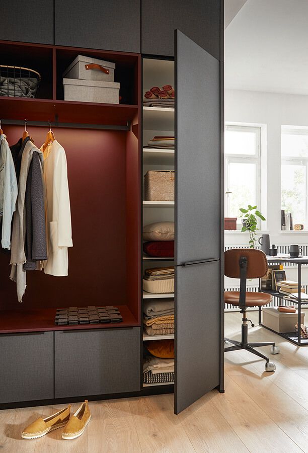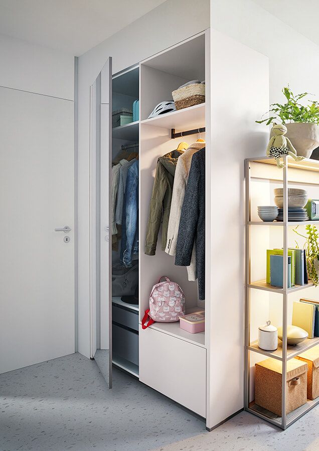 Im Eingangsbereich ist oft nicht viel Platz, trotzdem sollte er einen guten Eindruck machen. Da müssen clevere Lösungen her, um Jacken, Schuhe, Schirme, Mützen, Schulranzen und vieles mehr sinnvoll unterzubringen. Garderobenmöbel von neola sind die Visitenkarte Ihres Zuhauses, nehmen Familie und Besuchern ihren Ballast ab und sorgen gleichzeitig dafür, dass alles griffbereit ist. Auch schmal geschnittene Flure lassen sich damit einrichten – und das ganz im Stil des übrigen Zuhauses.